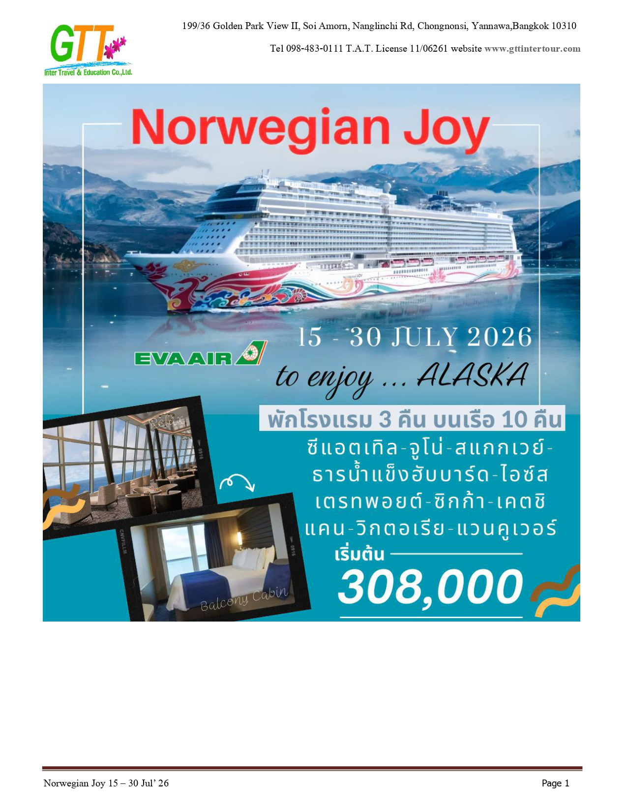 หมวดหมู่ : ทัวร์เรือสำราญ ,
