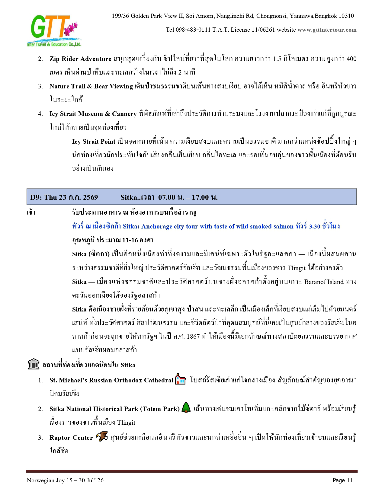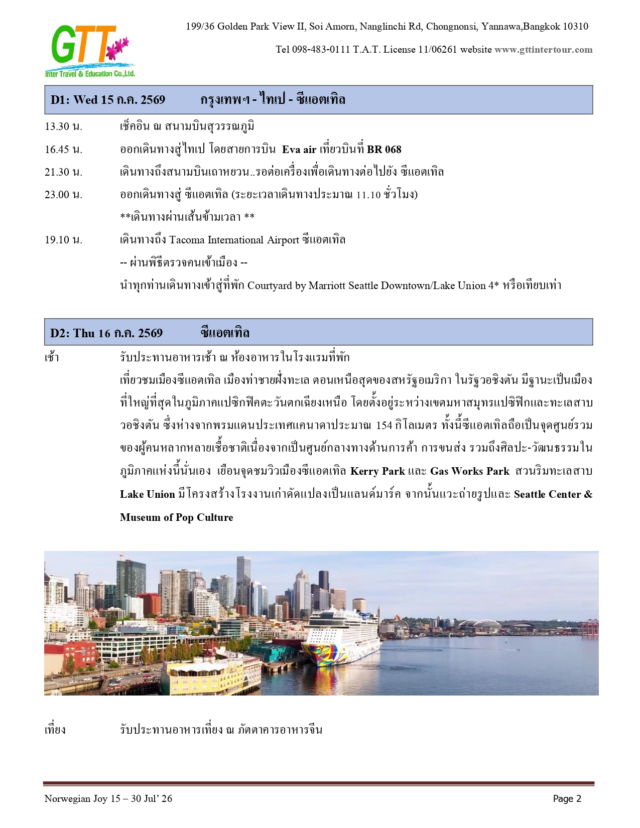 ซีแอตเทิล - จูโน่ - สแกกเวย์ - ไอซ์สเตรทพอยต์ - ซิกก้า - เคตชิแคน - วิกตอเรีย - แวนคูเวอร์