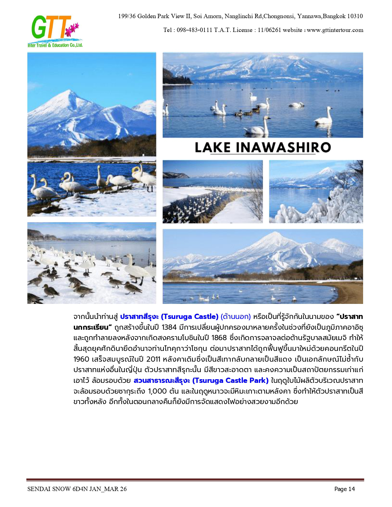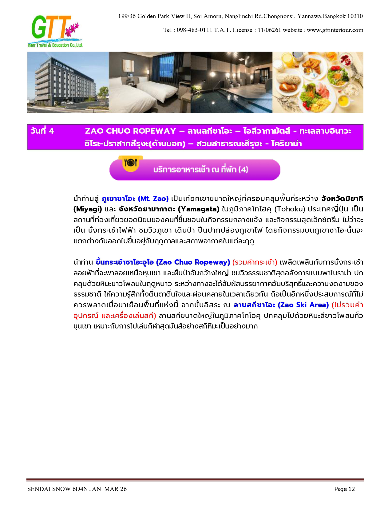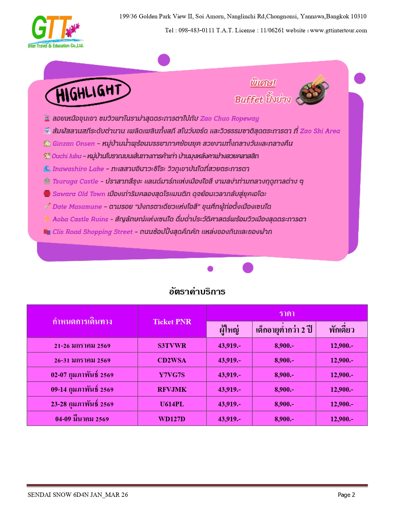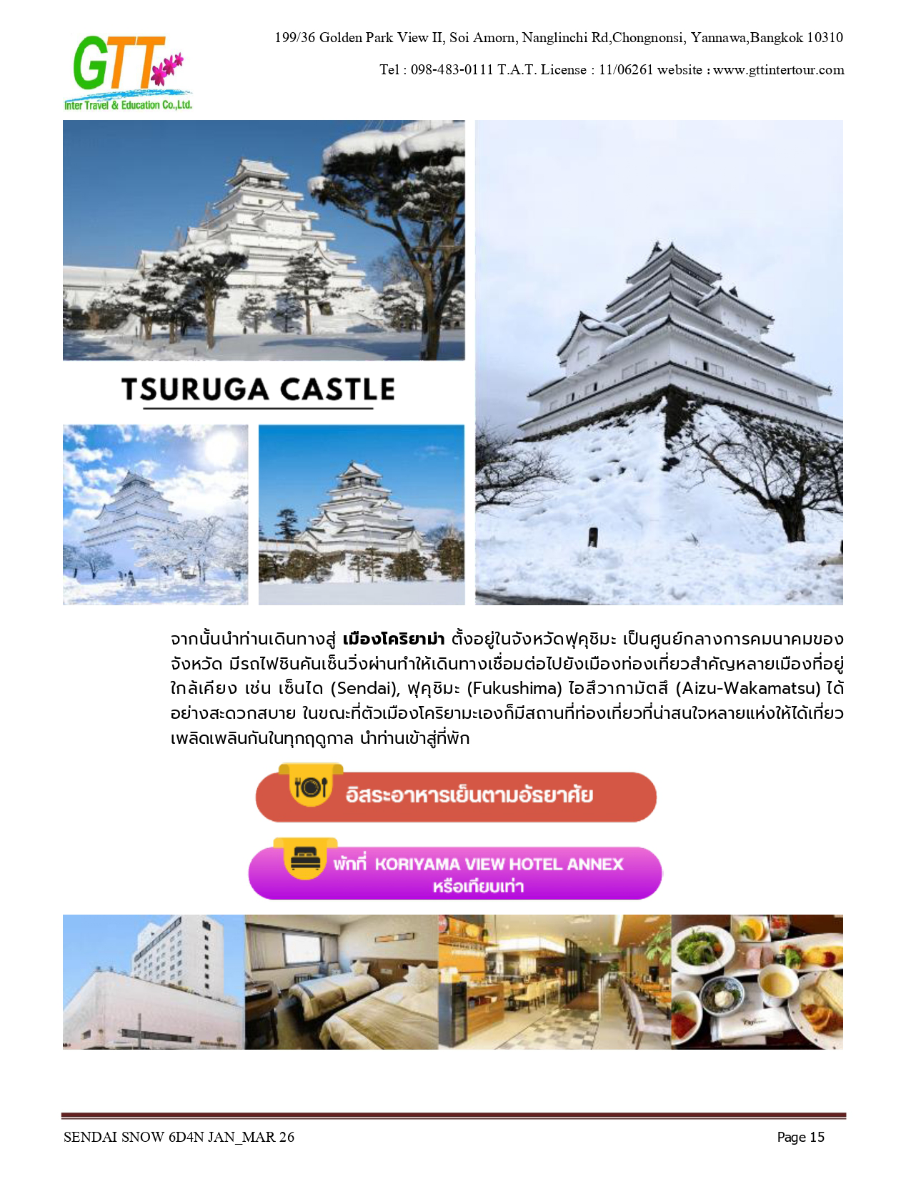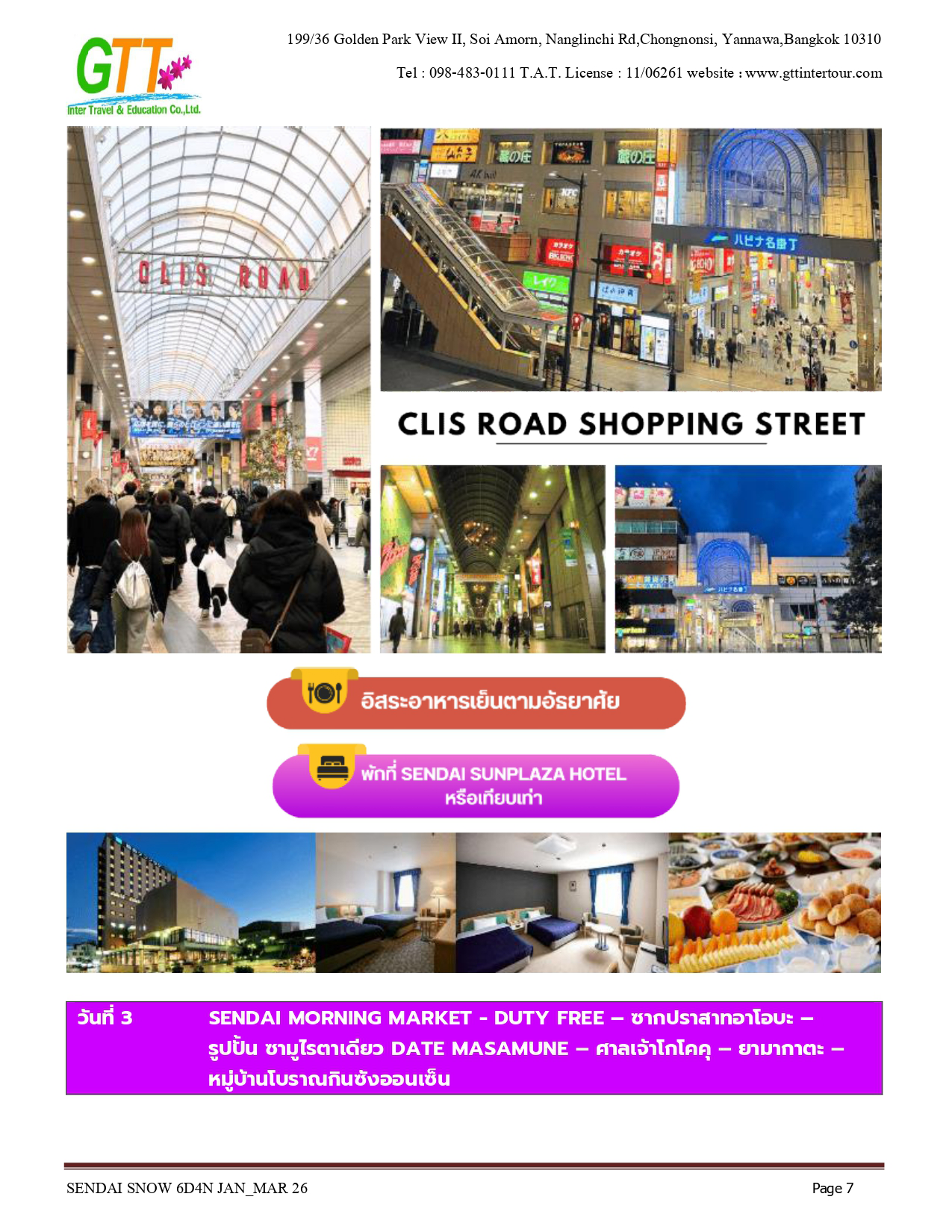 เมืองเก่าซาวาระ - อิบารากิ - ตลาดปลานาคามินาโตะ - เซนได - ช้อปปิ้งถนนคลิสโรด - ซากปราสาทอาโอบะ - รูปปั้นซามูไร ตาเดียว - DATE MASAMUNE - ศาลเจ้าโทโคคุ - ยามากาตะ - หมู่บ้านโบราณกินซังออนเซ็น - ZAO CHUO ROPEWAY - ลานสกีซาโอะ - โอสึ วากามัตสึ - ทะเลสาบอิวานะชิโระ - ปราสาทสีรุงะ (ด้านนอก) - สวนสาธารณะสึรุงะ - โคริยาม่า - ชิโมะโงะ - หมู่บ้านโออุจิ จูคุ - อิบารากิ - อามิ พรีเมี่ยม เอาท์เล็ท - นาริตะ - AEON MALL NARITA