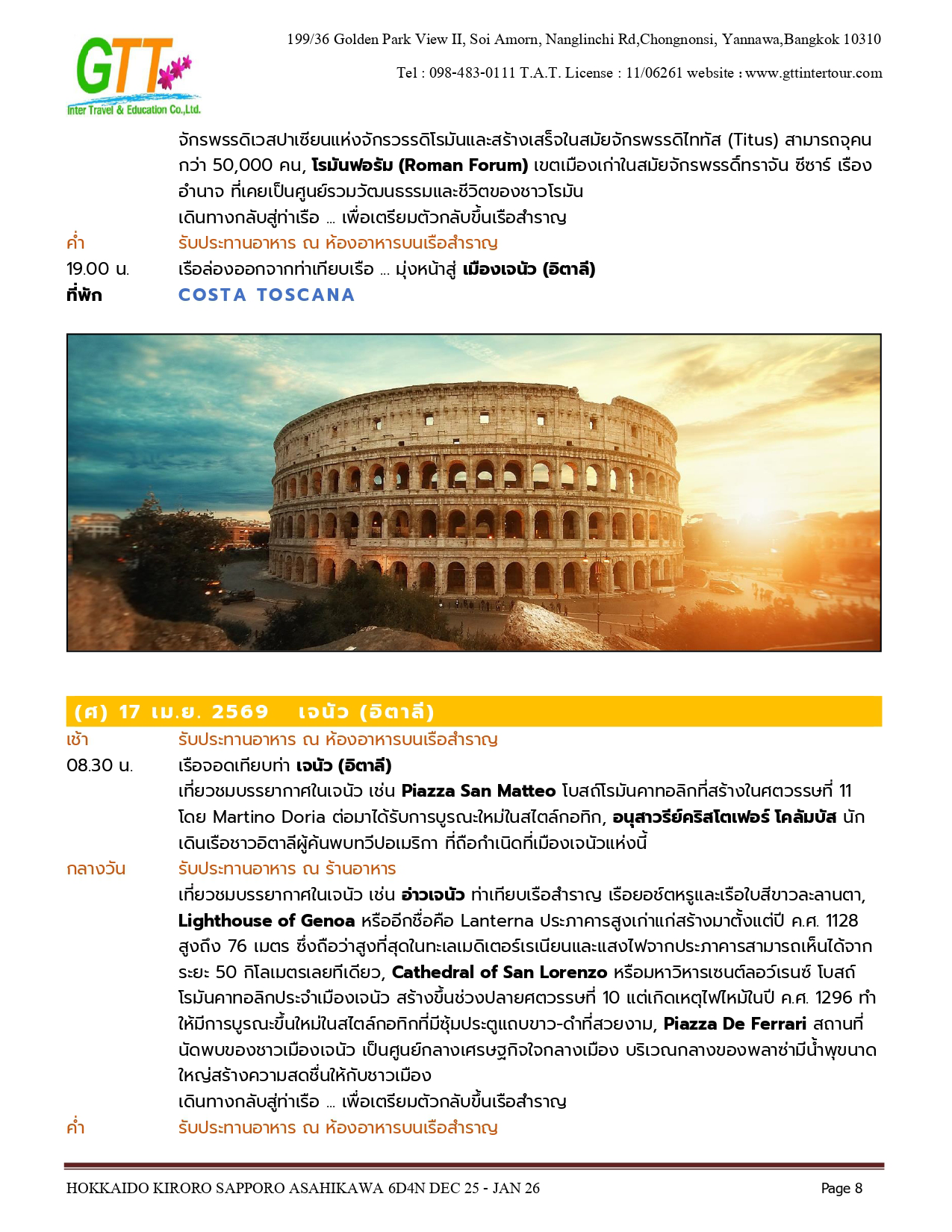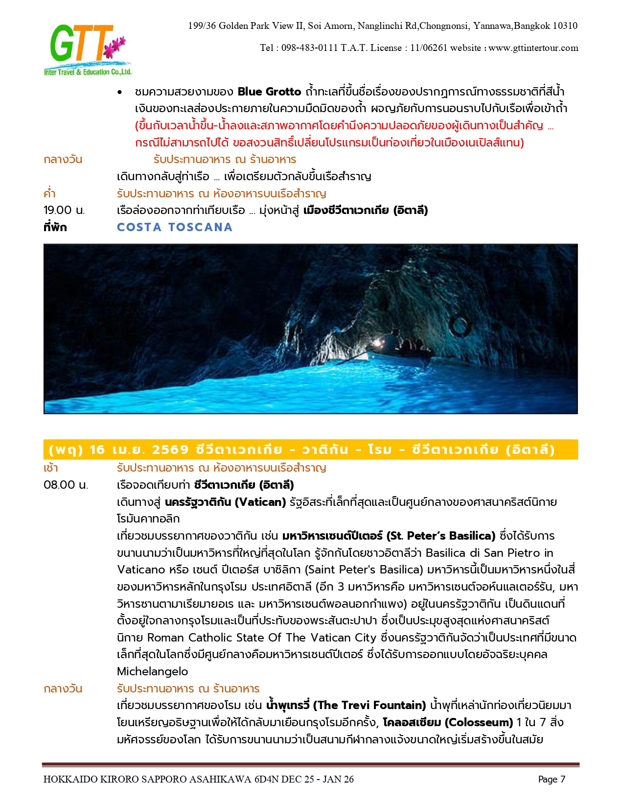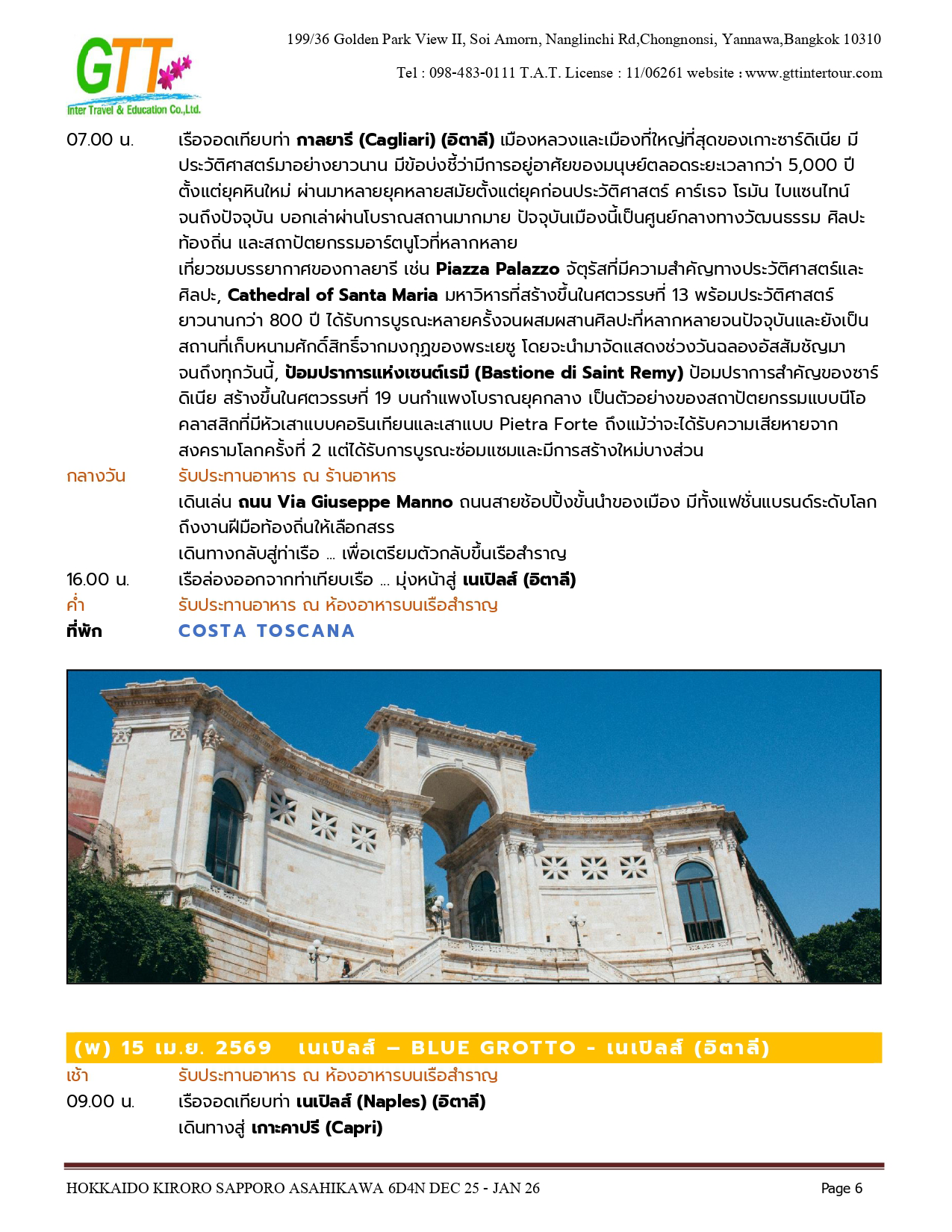 บาร์เซโลนา - กาลยารี - เนเปิลส์ - โรม - วาติกัน - Blue Grotto - เจนัว - มาร์เซย