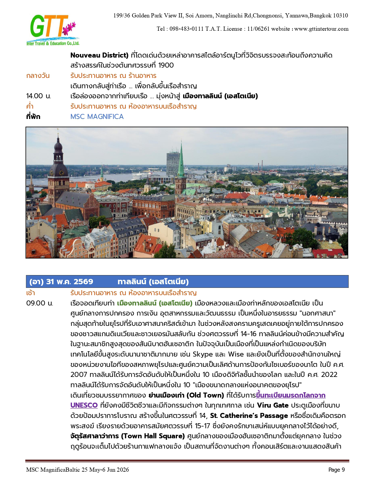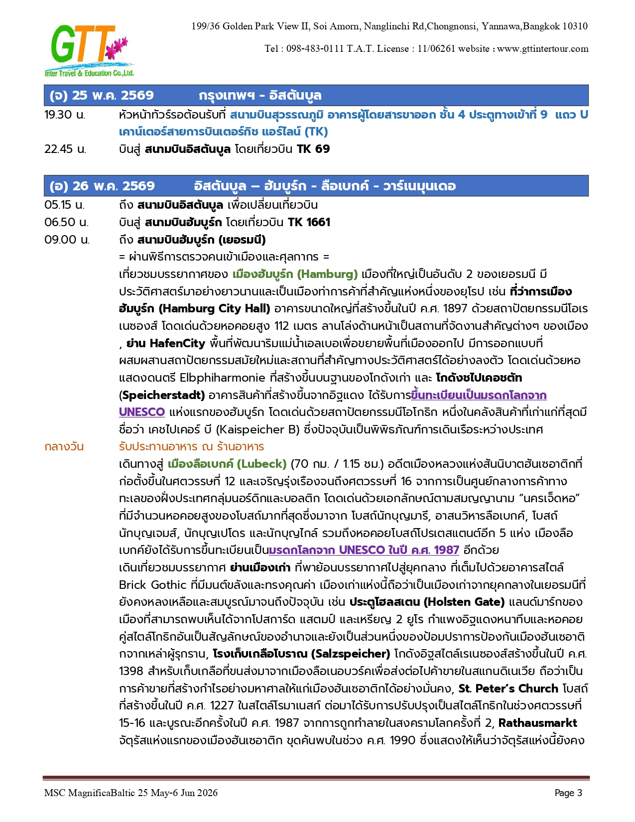 อิสตันบูล – ฮัมบูร์ก - ลือเบกค์ - วาร์เนมุนเดอ - รอสตอค - กดีเนีย – กดานสค์ - ไคลเพดา - ปาลังกา - ริกา - ทาลลินน์ - เฮลซิงกิ - สตอกโฮล์ม - โคเปนเฮเกน