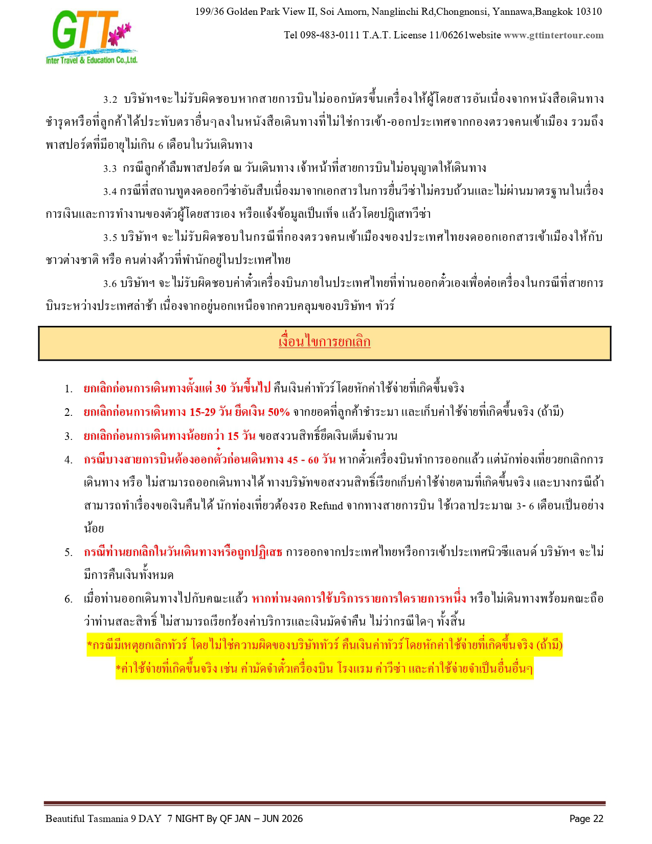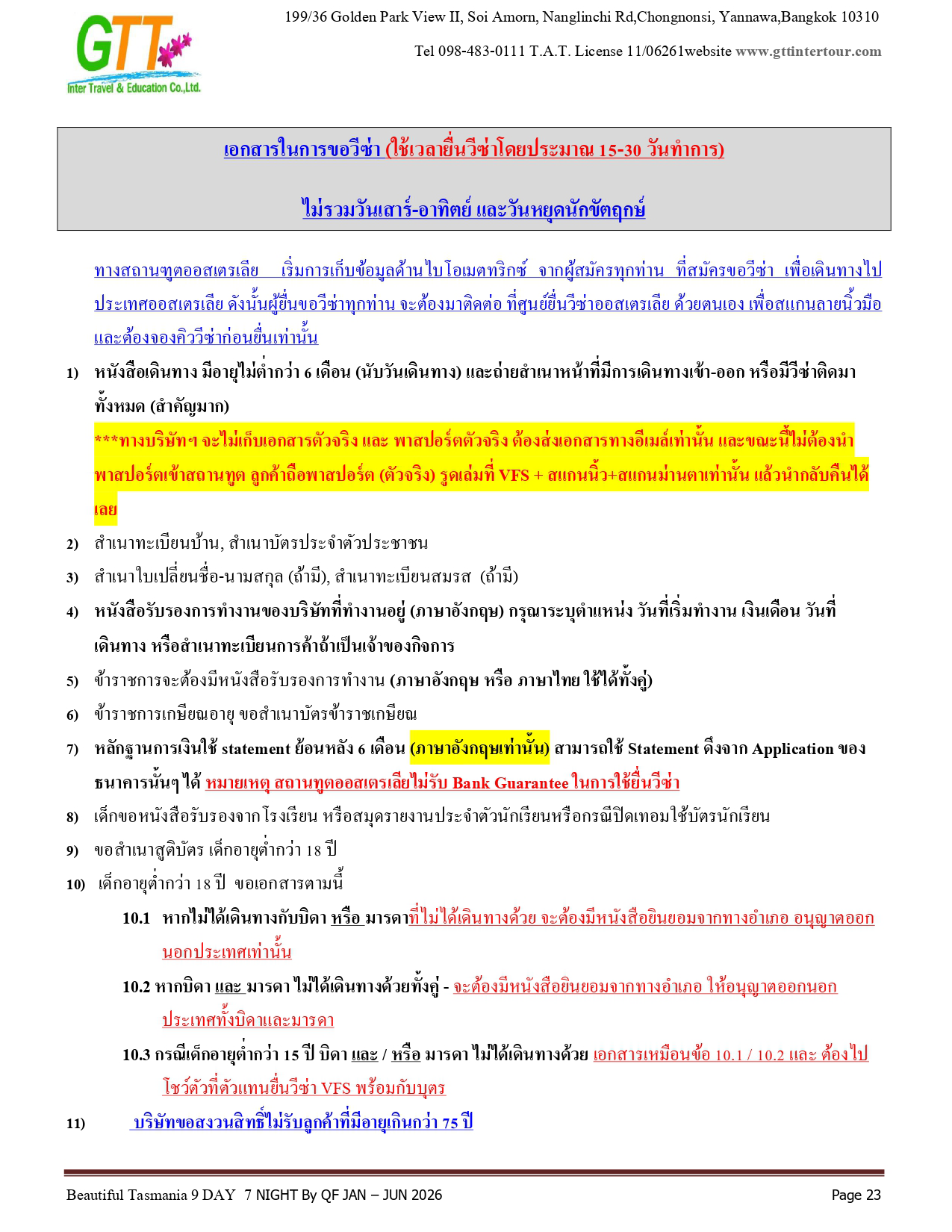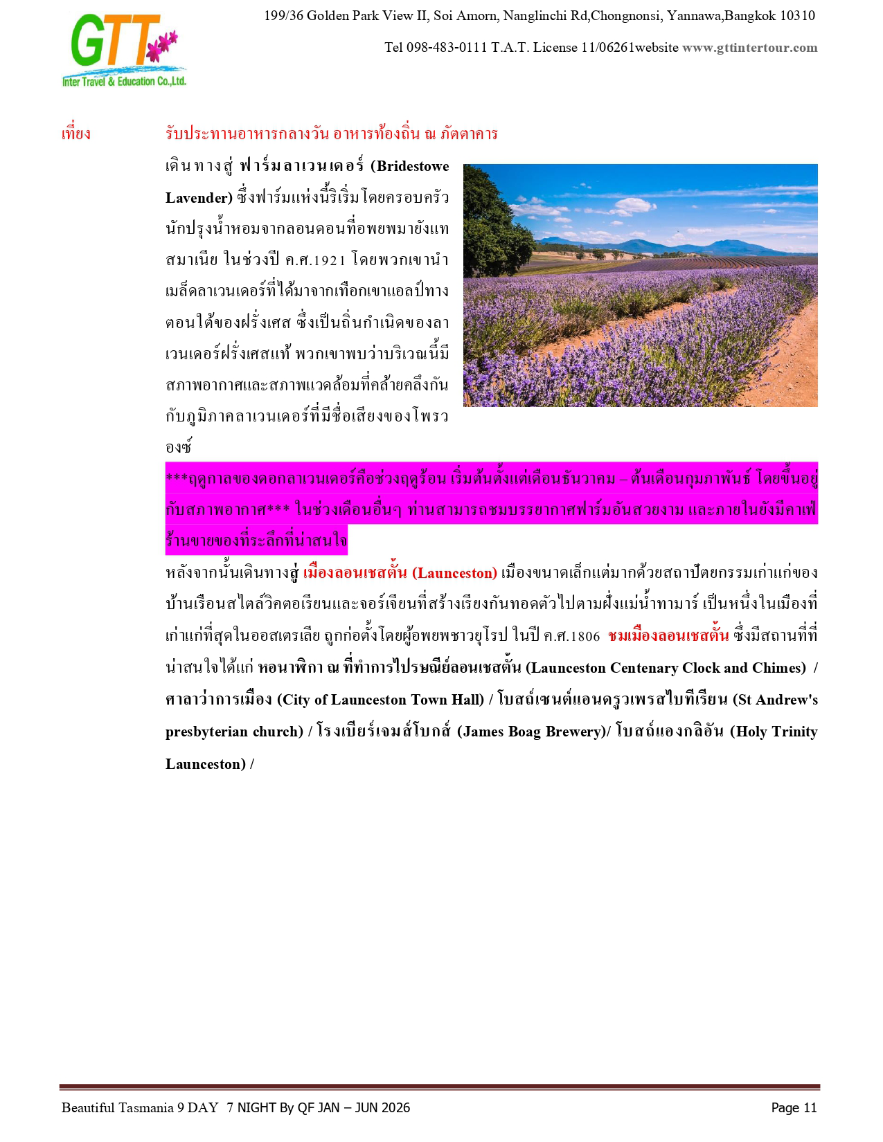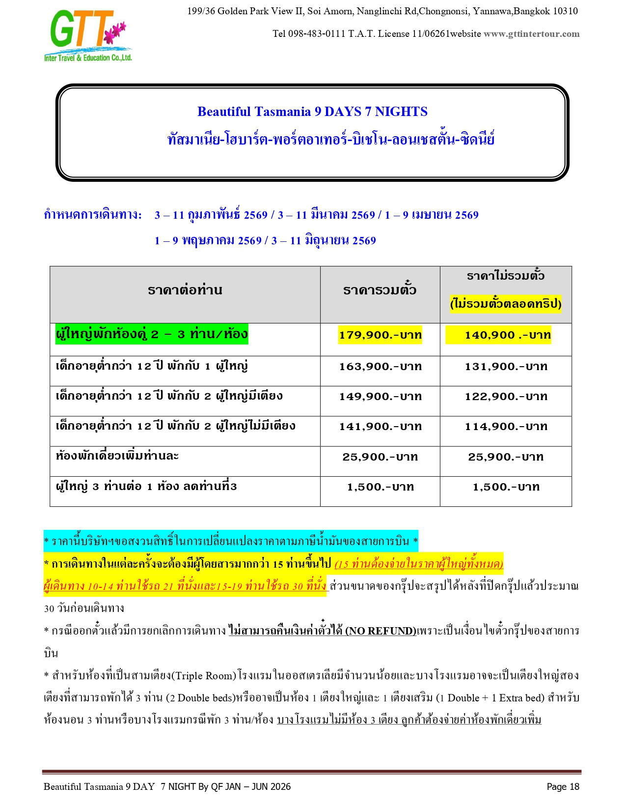 โฮบาร์ต - สวนสัตว์ธรรมชาติแทสเมเนี่ยนเดวิล - ล่องเรือพอร์ตอาร์เทอร์ - บิเชโน - อุทยานแห่งชาติเฟรย์ซิเนต์ - ลอนเชสตั้น - อุทยานแห่งชาติภูเขาเครเดิล - ซิดนีย์ - หาดบอนได - ล่องเรือชมอ่าวซิดนีย์