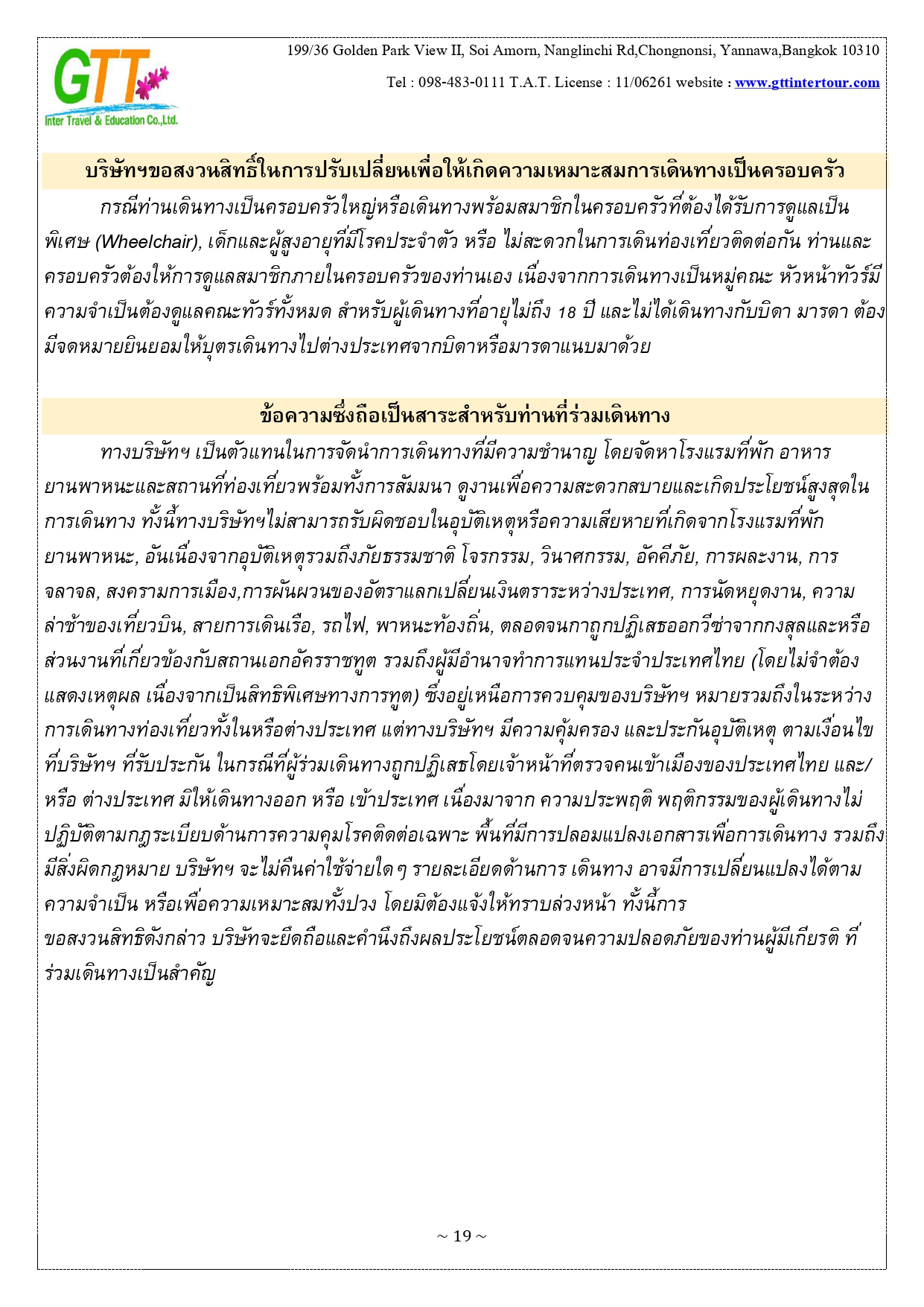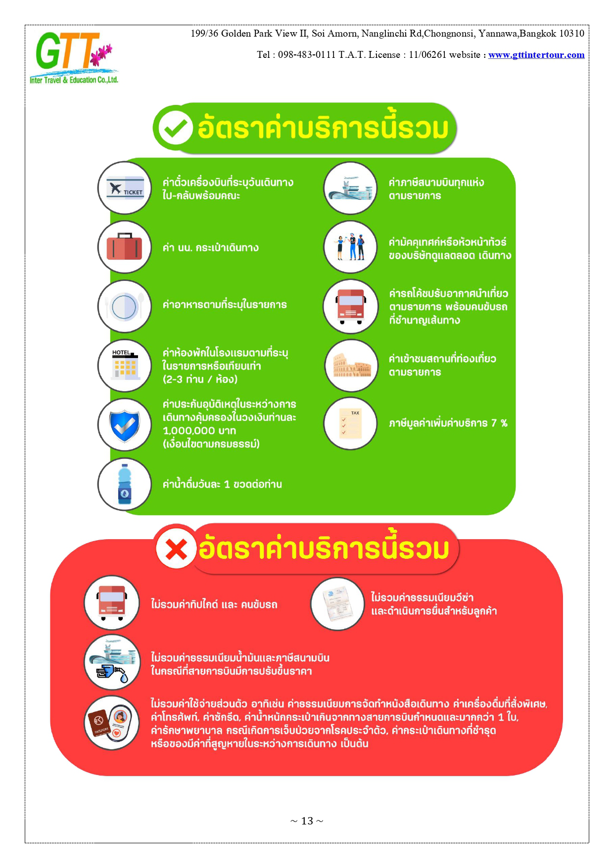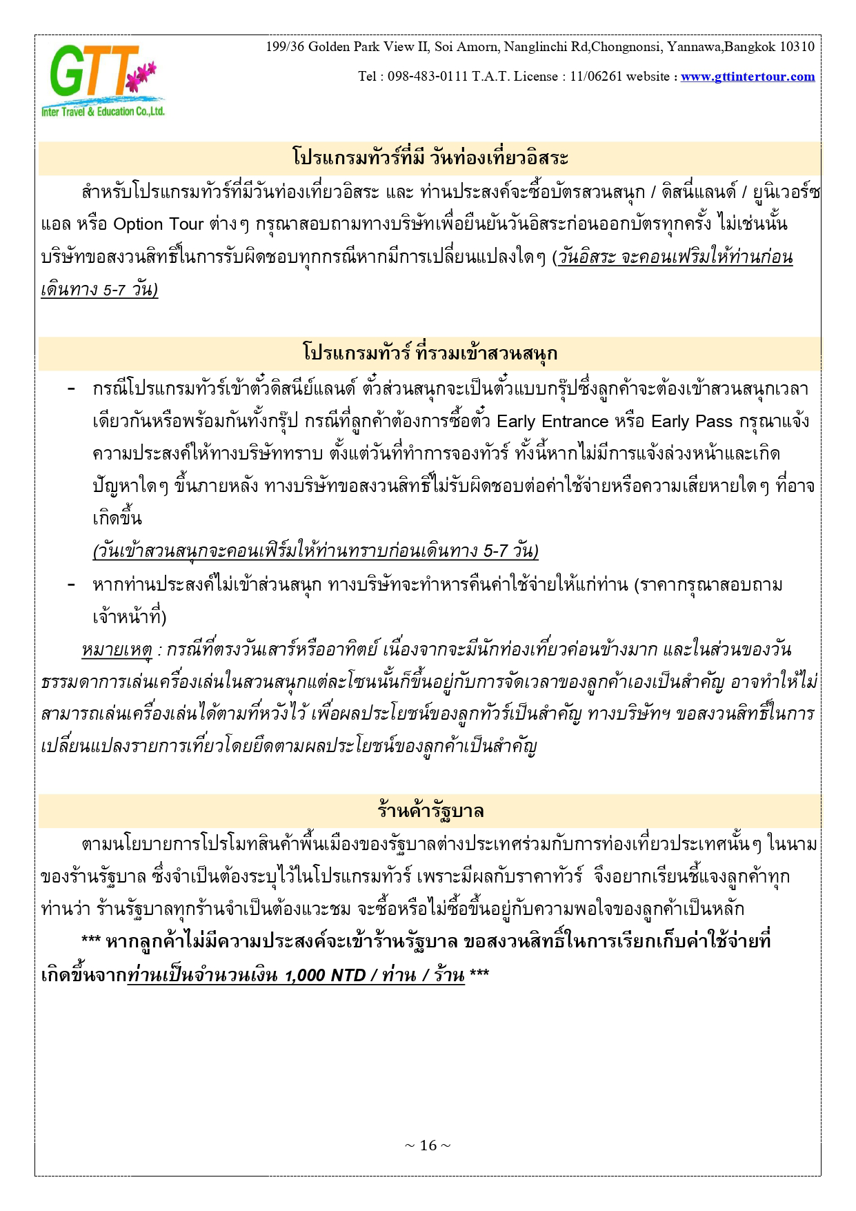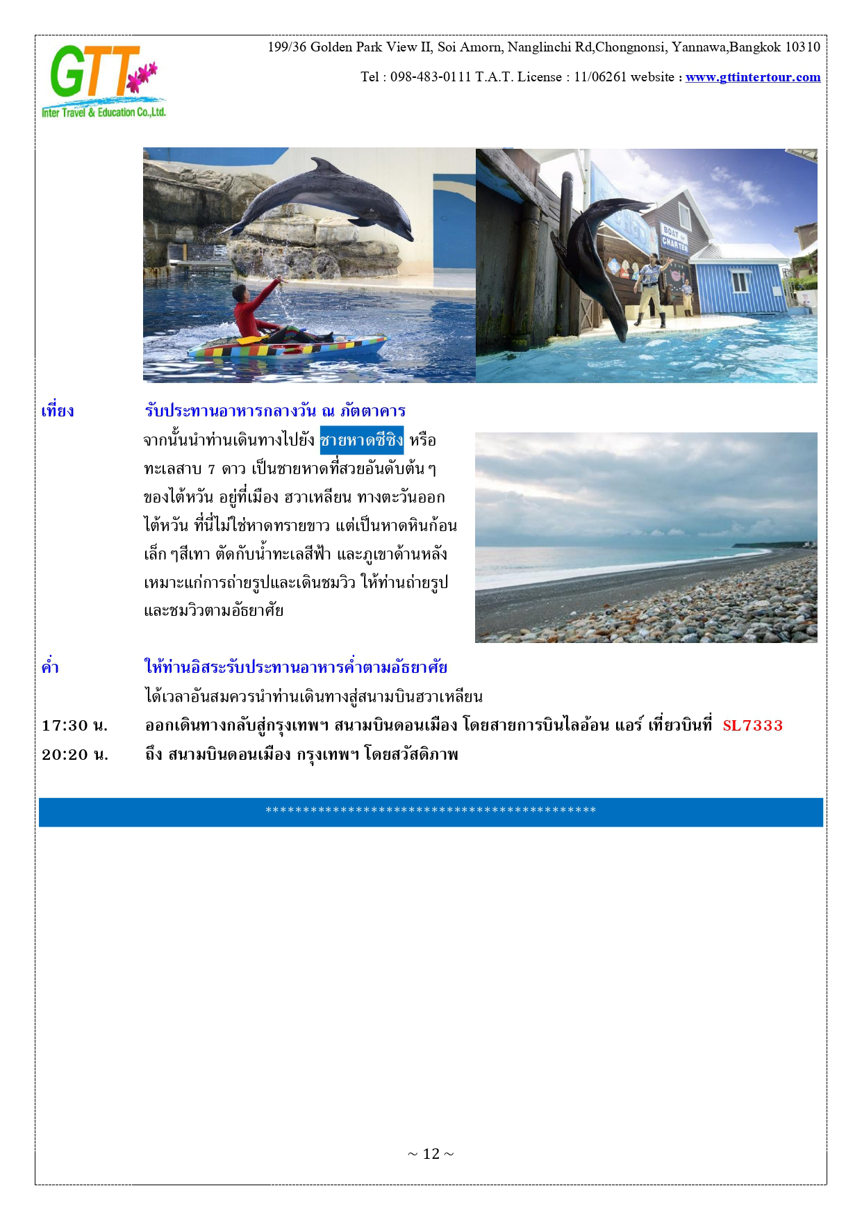 เมืองไทเป - หมู่บ้านทหารเก่าซื่อซื่อหนานซุน - ตึกไทเป101 – เถาหยวนไนท์มาร์เก็ต - เมืองหนานโถว – ล่องเรือทะเลสาบสุริยันจันทรา – วัดเหวินหวู่ – ชิมชาอู่หลง - ไถจงไนท์มาร์เก็ต - หมู่บ้านโบราณ จิ่วเฟิ่น - ท่าเรือประมงเจิ้งปิน - ซีเหมินติง - วัดหลงซาน - อนุสรณ์สถานเจียงไคเชค - เมืองฮวาเหลียน – ตลาดกลางคืนตงต้าเหมิน - สวนสนุกฟาร์กลอรี่โอเชี่ยนปาร์ค – หาดซีซิง