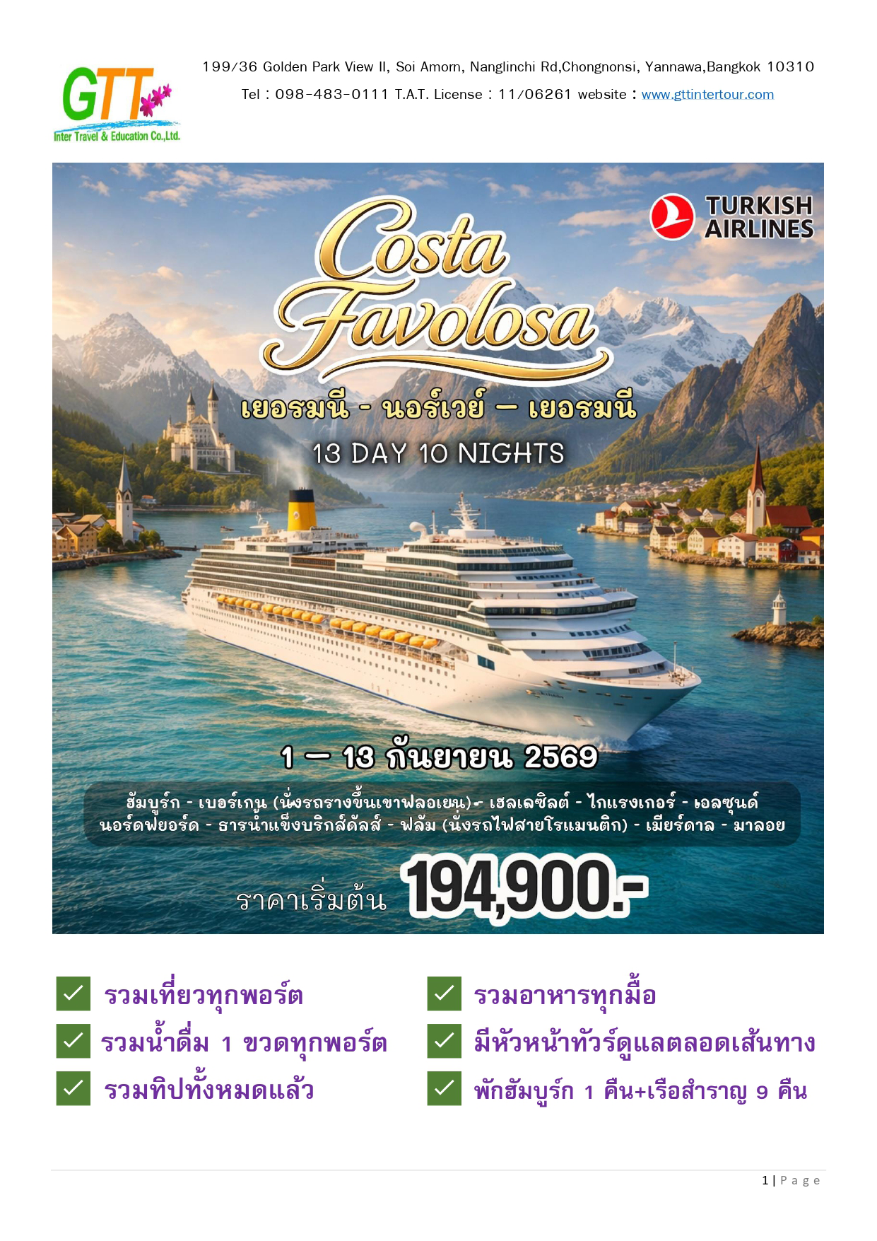 หมวดหมู่ : ทัวร์เรือสำราญ ,