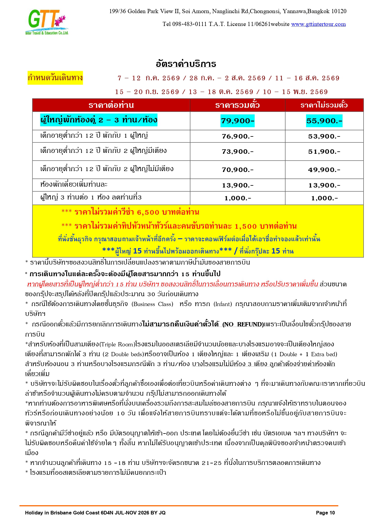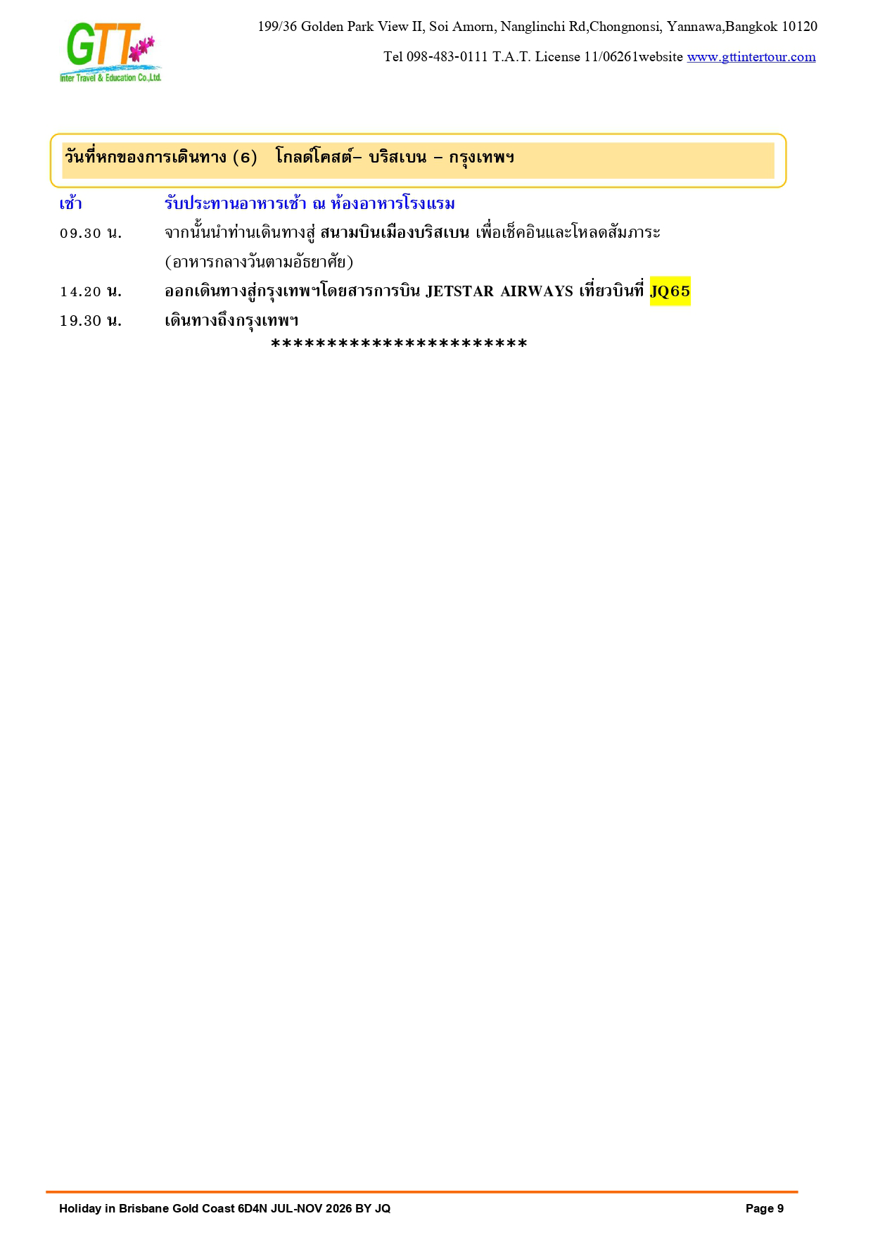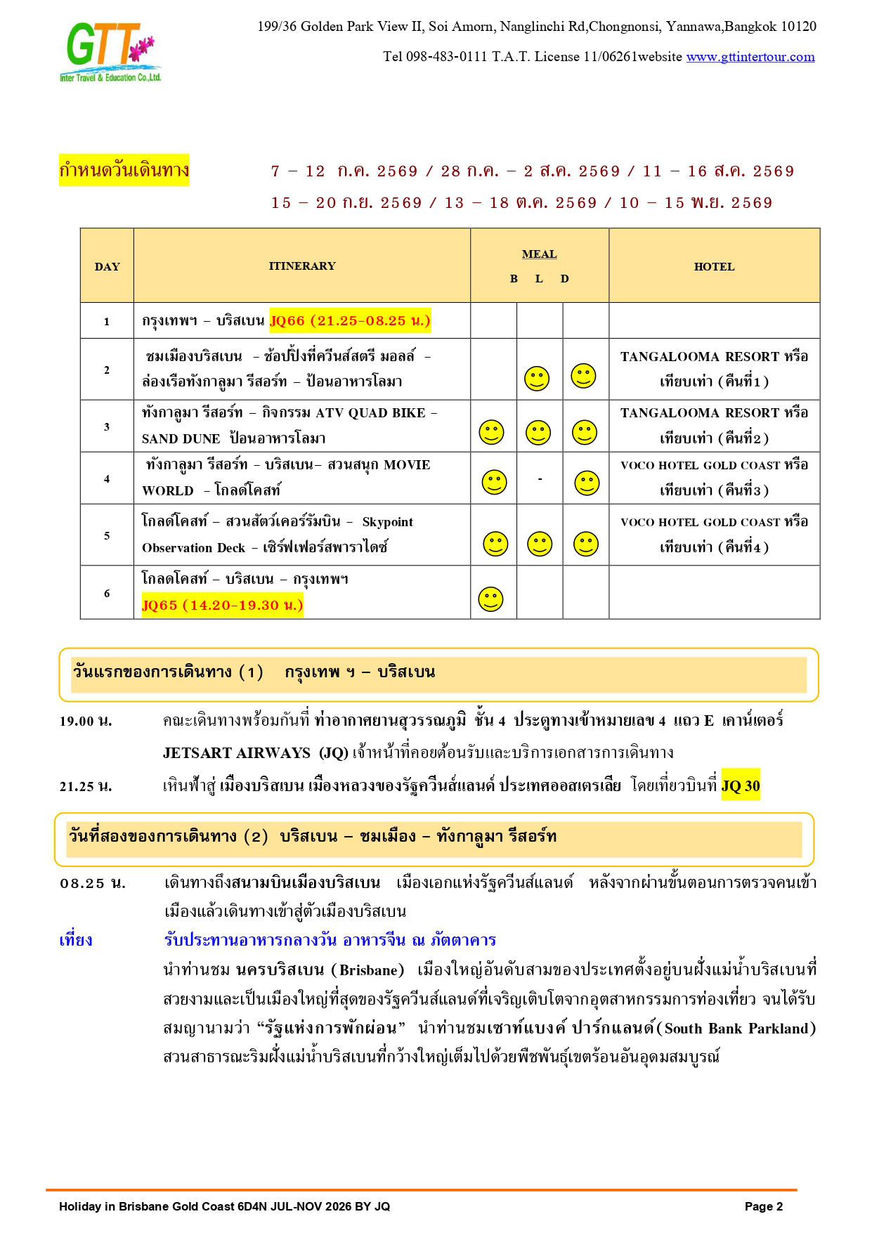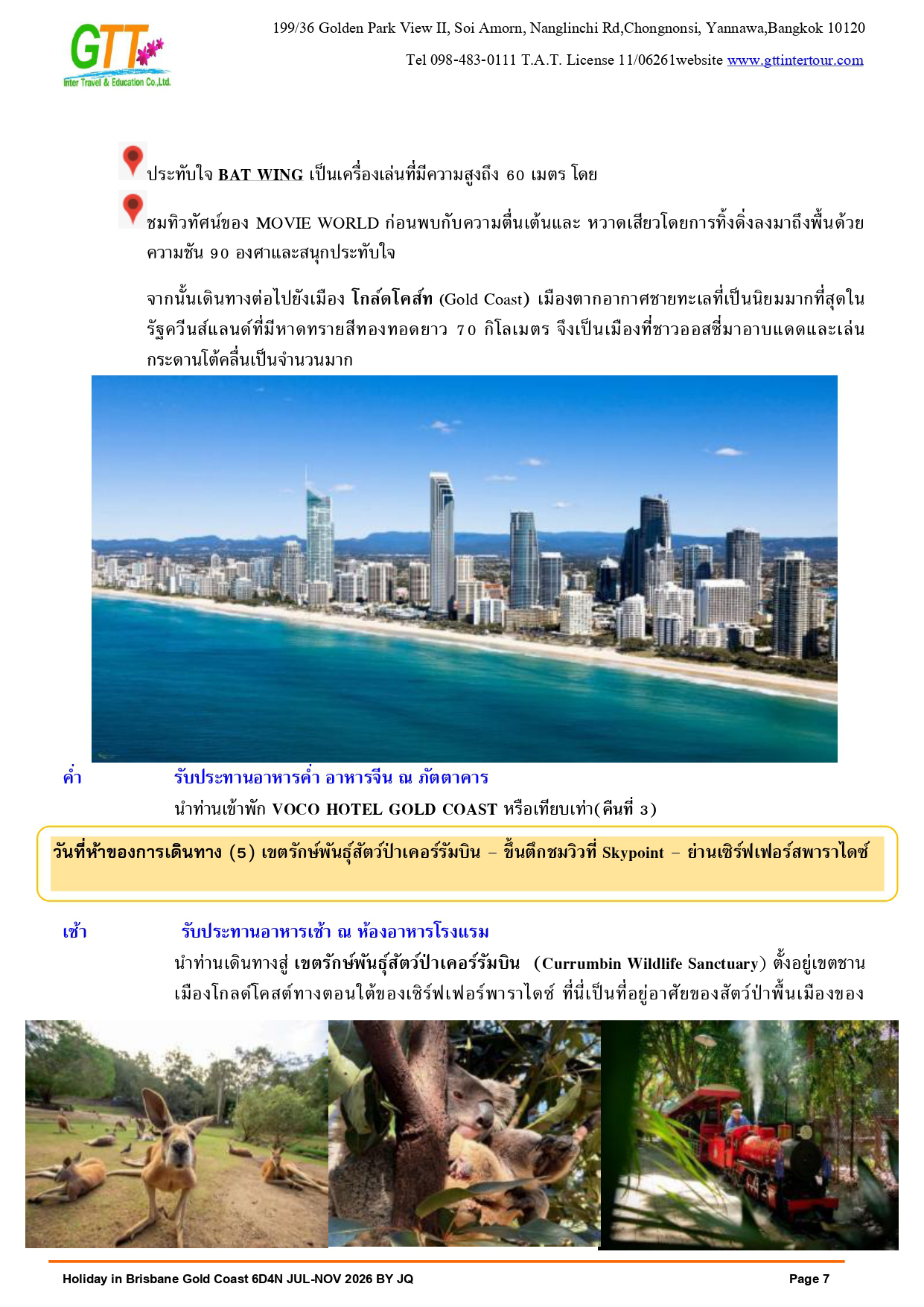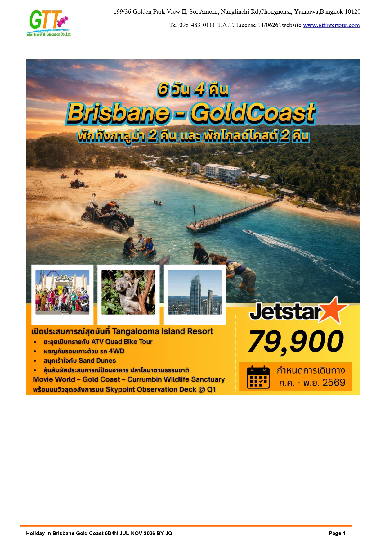 ทัวร์ออสเตรเลีย บริสเบน โกลด์โคสต์ 6 วัน 4 คืน สายการบิน JETSART AIRWAYS