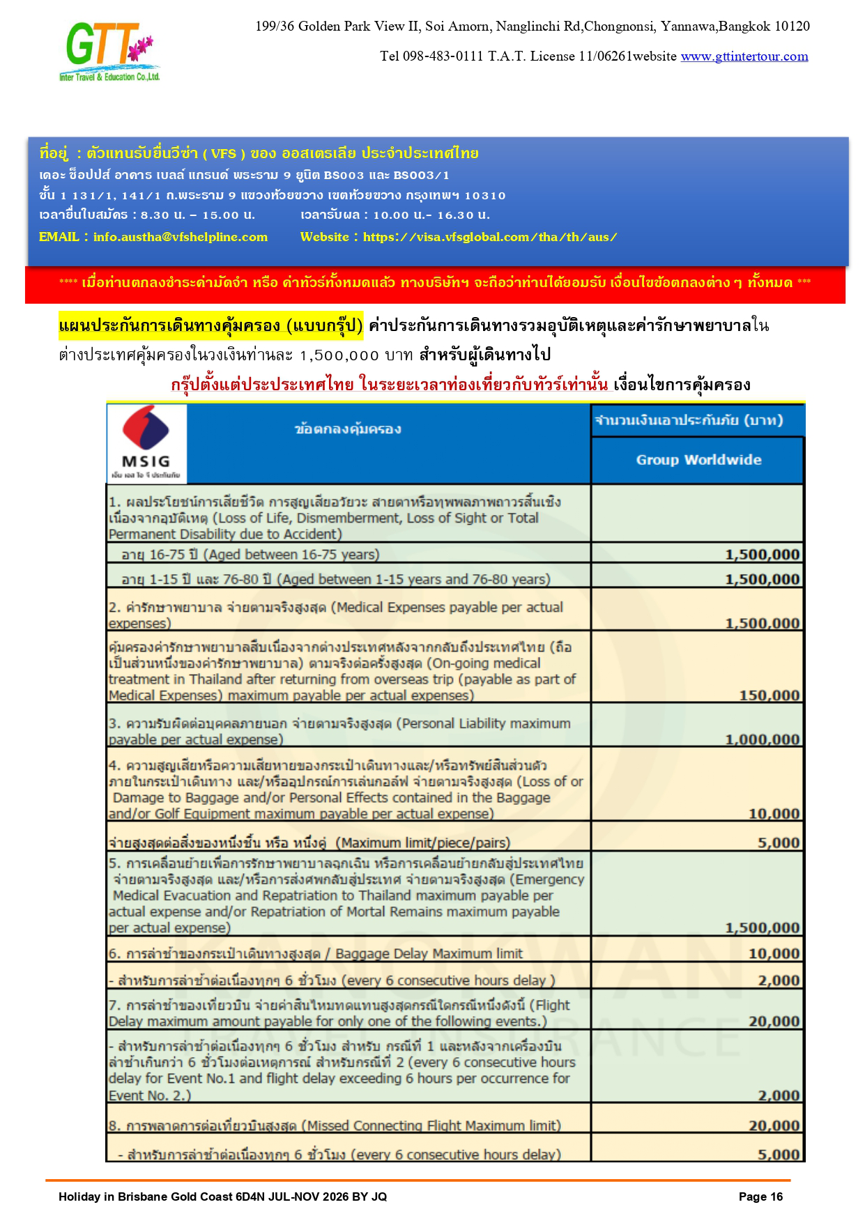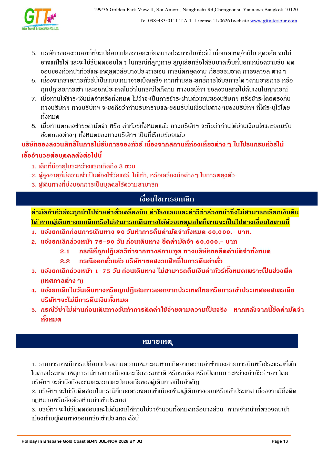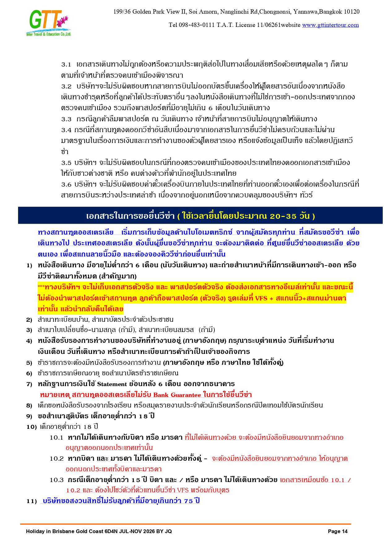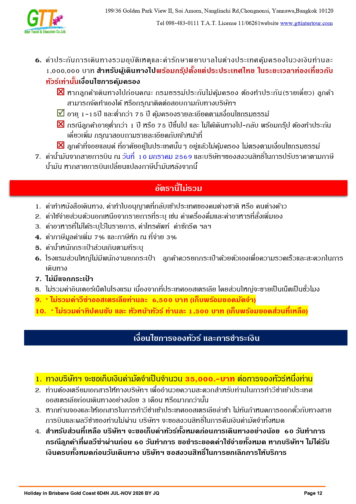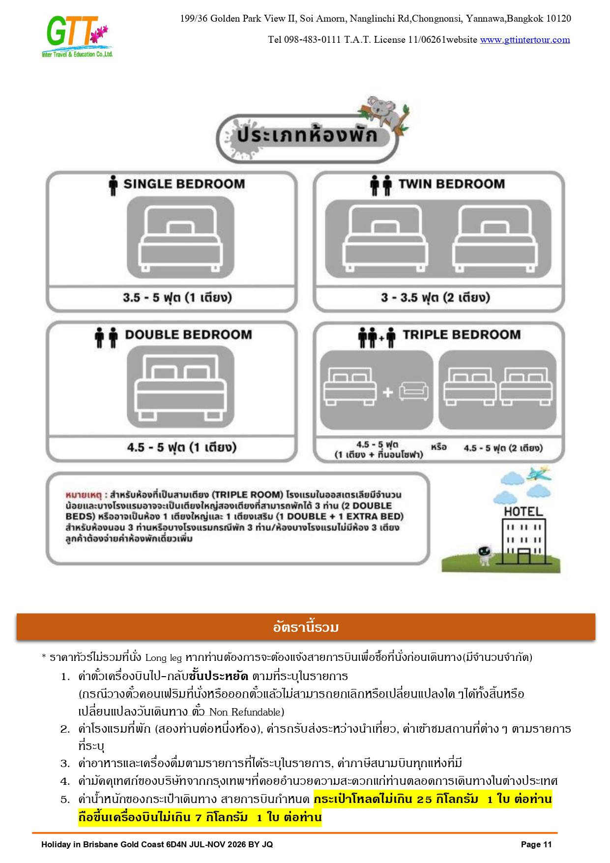 ทัวร์ออสเตรเลีย บริสเบน โกลด์โคสต์ 6 วัน 4 คืน สายการบิน JETSART AIRWAYS