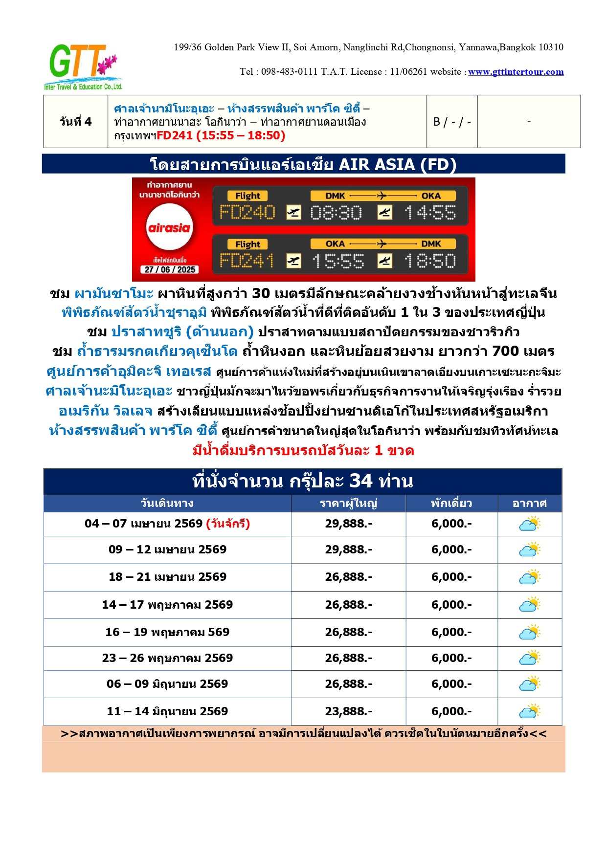 ทัวร์ญี่ปุ่น โอกินาว่า 4 วัน 3 คืน สายการบินแอร์เอเซีย