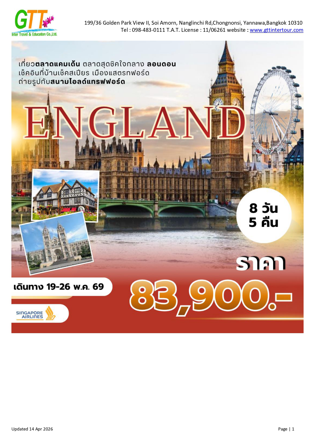 หมวดหมู่ : ทัวร์ยุโรป ,  ทัวร์อังกฤษ ,